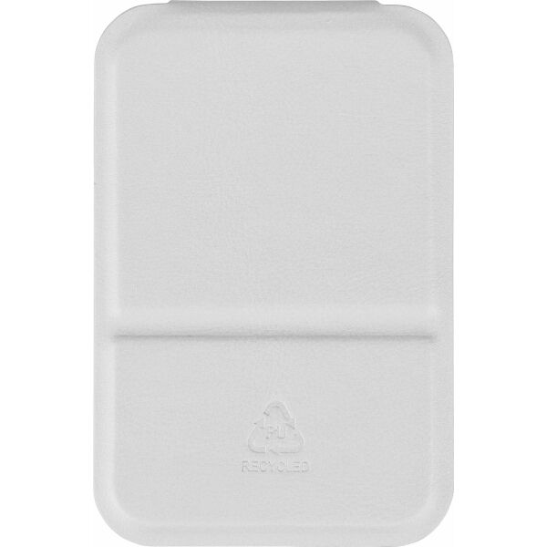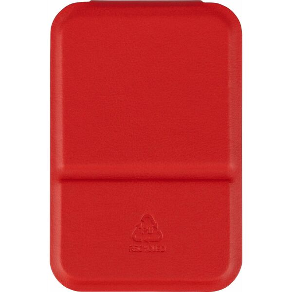 Spiegel met een opvouwbare hoes van gerecycled PU, ontworpen om rechtop te staan wanneer geopend. Pocketformaat van 70 x 11?cm, verkrijgbaar in zwart, wit en rood. Voorzien van een reliëflogo van gerecycled materiaal. Verpakt in een papieren zakje.